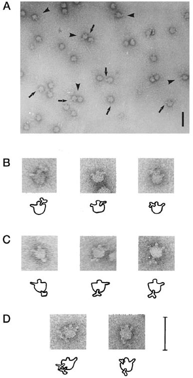 An electron microscope uses the scattering of an electron beam to detect small structures. We are used to seeing it used to detect small organelles or cellular membranes. However, its resolving capabilities are quite good and it has been used to visualize complex proteins, such as antibodies and ribosomes. In fact, the first models of a ribosome were based on electron micrographs. This was done by painstakingly examining each image of a ribosome on the micrograph by eye. The first structure of the ribosomal particle was proposed by Lake 20 years ago. Antibodies raised to ribosomal proteins could be visualized bound to the ribosomes, in order to construct models of their locations on the ribosome. Remember, all this was done BEFORE the application of computational approaches. So even the published models were done by hand.